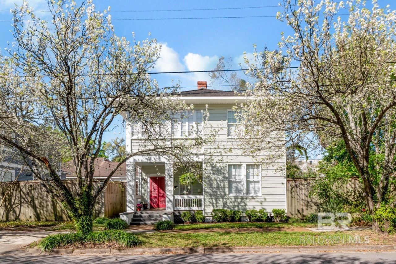 One of the historic Twin Sisters Houses, this charming American Four Square home was built in 1920 by parents for their two daughters. Located in popular Midtown Mobile, the home is filled with natural light and timeless character. Original hardwood floors run throughout, complemented by spacious bedrooms and a bright upstairs sunroom. The newly renovated kitchen features beautiful white stone countertops, a new gas cooktop, and freshly painted cabinets. Both bathrooms include classic clawfoot tubs that highlight the home's historic charm. Outside, enjoy a private garden area perfect for relaxing or entertaining. Buyer to verify all information during due diligence.