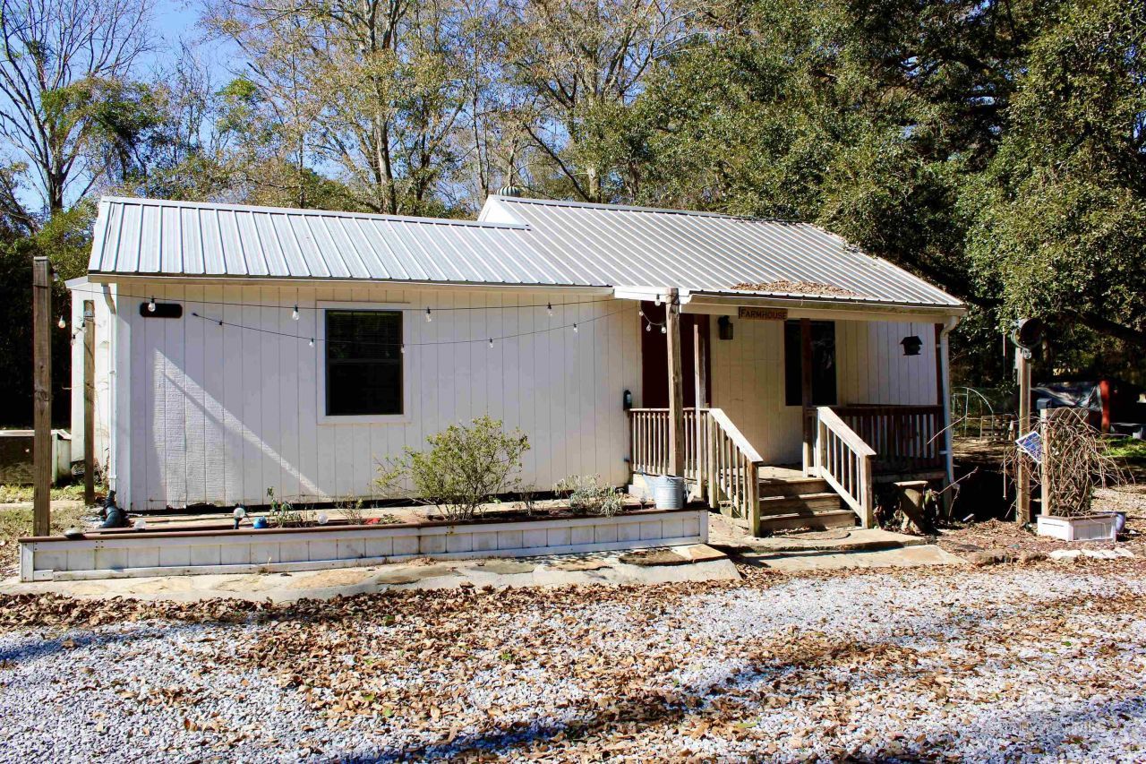 Charming 1927 Cottage on 1 Acre! Beautifully updated with all updated floor covering (NO carpet) and an oversized walk-in shower, or enjoy the flexibility of an office space conveniently located between the great room and primary bedroom, ideal for working from home or pursuing creative projects. Peaceful, gently rolling land surrounded by majestic oak trees. Enjoy an open floor plan, an inviting front porch, and a lovely outdoor patio with cemented rock flooring, garden planters, and evening bistro lights for added ambiance. This cozy 1BR/1BA home offers an office space between the great room and bedroom, plus views of nature from every window. Property includes a quaint red workshop with 2 exterior bays, an indoor workspace with ample light and shelving, an additional storage shed, and a 1-car carport that can double as an outdoor living space. Seller has installed RV Hookup / RV septic hook up on property. NO HOA! Conveniently located approx. 3 miles to downtown Robertsdale, 6 miles to I-10/Buc-ee's, and 30 miles to the sugar-white beaches and turquoise waters of Gulf Shores. A rare blend of history, charm, peace, and updated comfort?your private retreat awaits. MORE PHOTOS COMING SOON! Buyer to verify all information during due diligence.