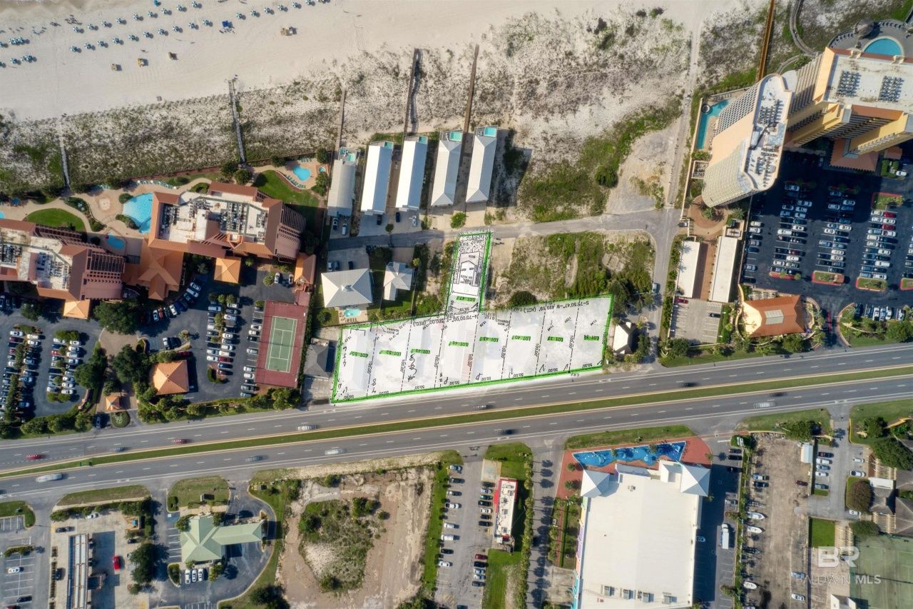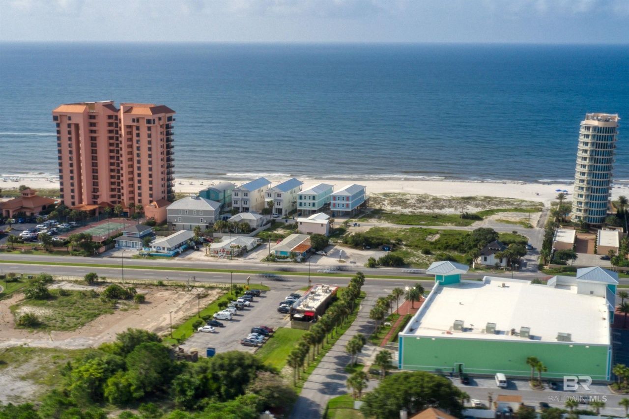 400' of prime frontage on Perdido Beach Blvd. The property consists of (4) vacant land lots fronting Perdido Beach Blvd, (4) lots consisting of (3) free standing retail centers. This property would be an excellent opportunity for a mixed-use development or high end vacation rental properties. Commercial/Retail - If the existing structures are torn down, a commercial building as large as 5000 sf could be built, anything larger and there would not be adequate parking spots and would need to have PUD approval to do anything larger than 5000 sf. Existing structures have been there since pre 1950s and some believe to be some of the oldest structures still remaining on Perdido Beach Blvd. These buildings could be completely restored and to create a must stop shopping experience for locals and tourist. Vacation Rental Redevelopment - There are (8) originally platted lots on the property with each lot measuring 50' x 100'. Single Family or a duplex could be built on each lot BY RIGHT. No need for PUD approval to build (8) single family homes or duplexes. Buyer to verify all information during due diligence.